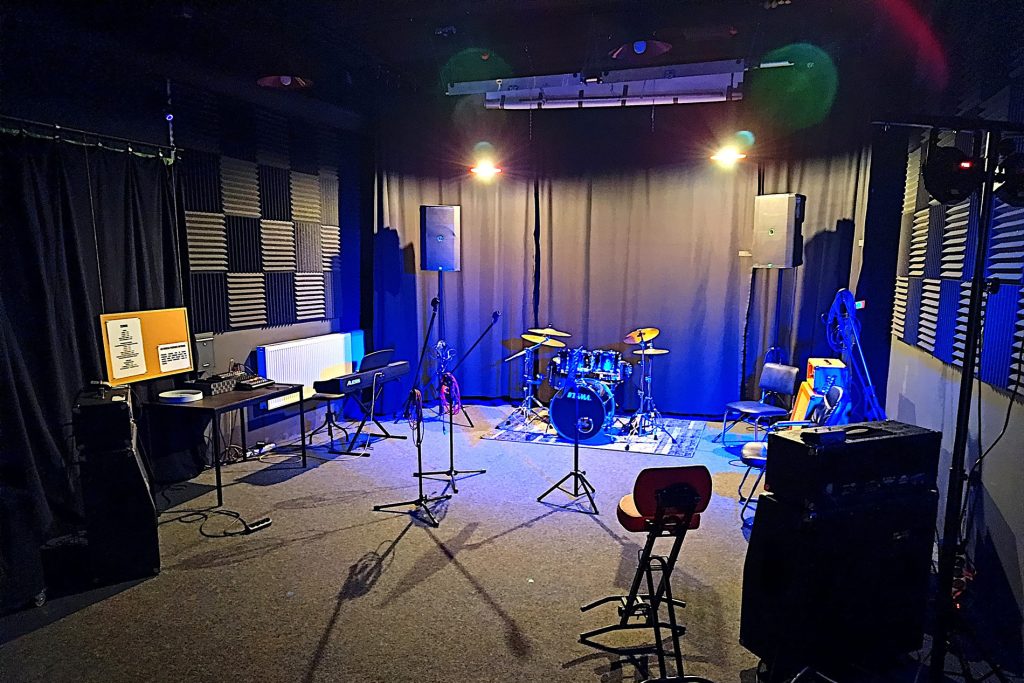Sala prób – Młyn Sułkowice – duża sala prób o powierzchni 45 m2, popularna szczególnie wśród zespołów;